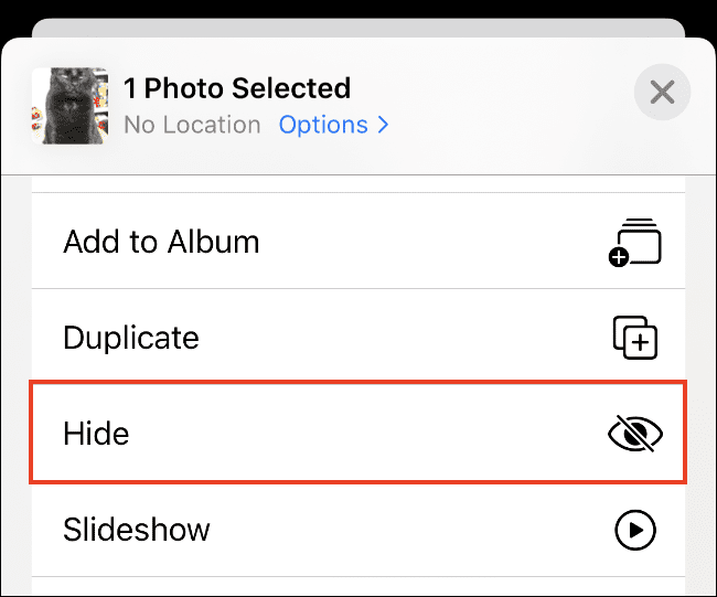 - سپس یک پنجره باز می شود که دو گزینه Hide Photo و Cancel دارد و شما باید دوباره بر روی گزینه Hide Photo بزنید تا عملیات مخفی کردن به پایان برسد.