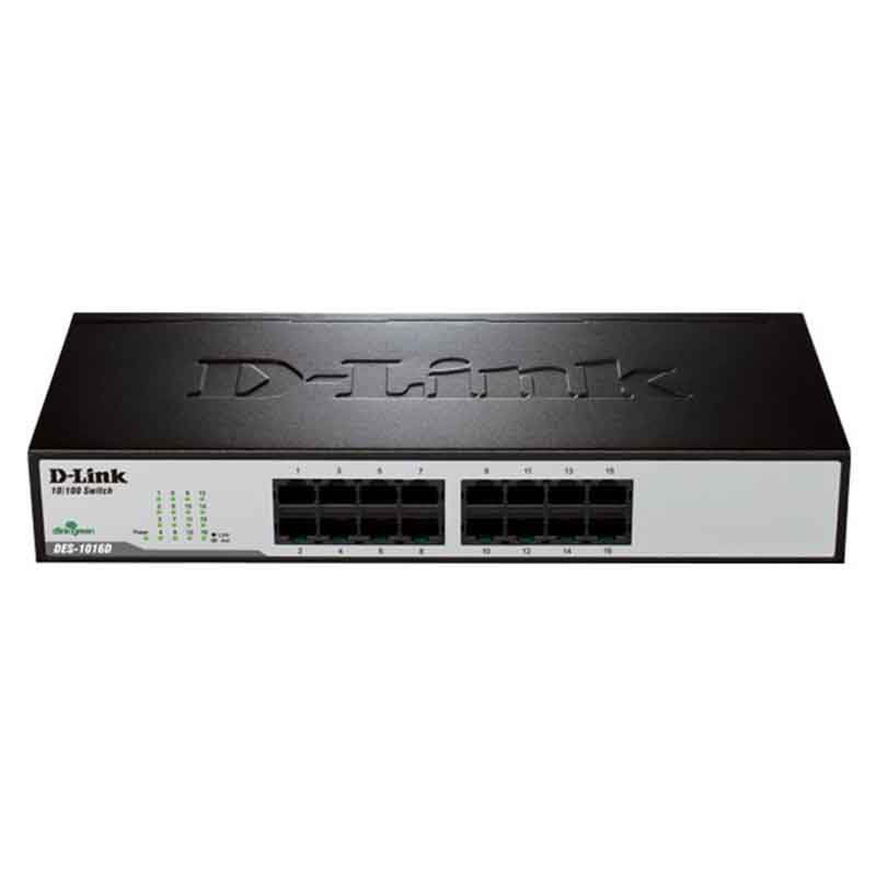 سوییچ 16 پورت و دسکتاپ دی-لینک مدل DES-1016D یک سوییچ غیرقابل مدیریت با 16 پورت 10/100 مگابیت بر ثانیه است که میتواند کارایی شبکه های Workgroup  را افزایش دهد. این دستگاه قدرتمند به آسانی این امکان را فراهم میکند که کاربران به پورت هایی با سرعت 10 مگابیت بر ثانیه تا 100 مگابیت بر ثانیه دسترسی داشته باشند.