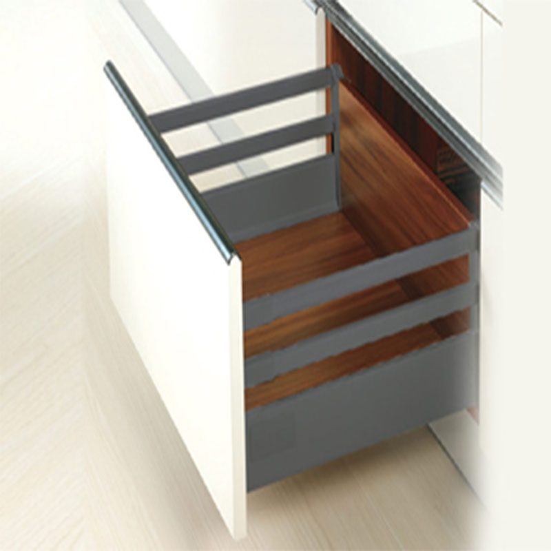 این ریل به گونه ای طراحی شده که ریل دارای بدنه بوده و برای طراحی کشو نیاز به سه قسمت MDF است. سه قسمت برای تکمیل کشو نیاز بوده که شامل پشت کشو، کف کشو و جلو کشو است. برای محاسبه عرض کف کشو باید داخل به داخل یونیت منفی 8 سانتیمتر شود.