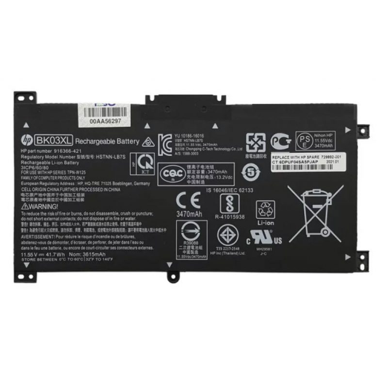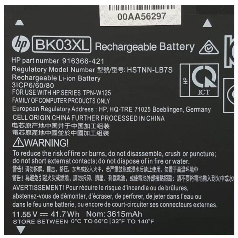 برای معرفی باتری لپ تاپ اچ پی Pavilion X360-14_BK03XL باید گفت این باتری یک باتری با ولتاژ خروجی 11.55V است. این باتری دارای ویژگی هایی از قبیل ظرفیت 3470MA و توان خروجی 40WH و ولتاژ خروجی 11.55V می باشد. این باتری با بالاترین کیفیت و تشابه به باتری اصلی لپ تاپ شما ساخته شده است. بعضی ویژگی های خاص این باطری در زیر لیست شده است. اگر باتري لپتاپ شما زياد داغ ميکند، اگر شارژ نگه نميدارد و مدام براي عوض کردن باتري پيام ميدهد، اگر شارژ نميشود و لپتاپتان را با برق شارژر روشن نگهداشتهايد، وقت خريدن يک باتري لبتاب است. بعضی شرایط مانند: شارژ کردن بیش از حد باتری، شارژ کردن باتری برای مدت زمان طولانی، استفاده نامناسب از دستگاه، استفاده از شارژرهای غیر استاندارد و … از جمله مواردی هستند که باعث خرابی باتری لپ تاپ می شوند.
