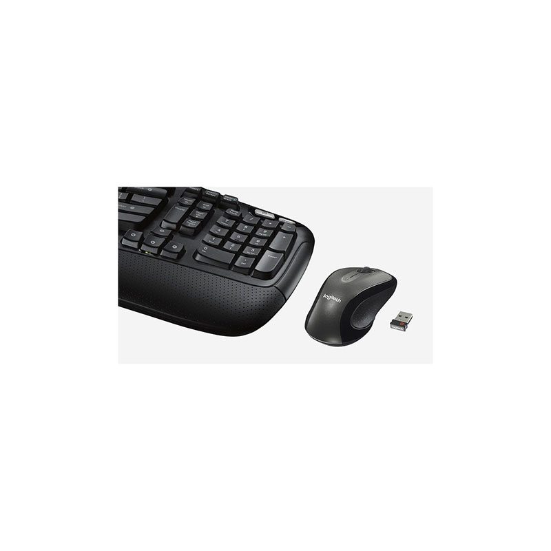 کیبورد و ماوس بیسیم لاجیتک مدل Logitech MK550 :صفحه کلید Mk550 طراحی منحنی پویا را با آشنایی با صفحه کلید مستقیم ترکیب می کند. مزایای ارگونومیک اضافی یک تکیه گاه کف دست و قاب کلید موجی شکل را در یک چیدمان و فرم فاکتور صفحه کلید آشنا خواهید داشت. تکیه گاه کف دست کمک می کند تا دستانتان را به راحتی روی صفحه کلید قرار دهید – و مکانی راحت برای استراحت کف دستانتان در زمانی که تایپ نمی کنید ارائه می دهد.ماوس Mk550 برای ساعت ها راحتی ساخته شده است. با شکل مجسمهسازیشده بهعلاوه دستگیرههای لاستیکی و چرخ اسکرول، میتوانید در تمام طول روز روی کار تمرکز کنید – چه در دفتر یا پشت میزتان در خانه. طراحی دوسویه آن را برای کاربران راست دست و چپ دست عالی می کند.سه سال عمر باتری صفحه کلید و دو سال عمر باتری ماوس است. عمر طولانی باتری به این معنی است که وقت خود را برای ردیابی باتری های جدید صرف نمی کنید. بادوام و قابل اعتماد، صفحه کلید تا سه سال بدون تعویض باتری دوام می آورد. ماوس تا دو سال بدون تعویض باتری کار می کند. ممکن است بسته به شرایط کاربر و محاسبات متفاوت باشد.به سادگی گیرنده USB را به لپ تاپ رایانه خود وصل کنید تا در چند ثانیه شروع به کار کند. گیرنده همچنین اتصال قوی و قابل اعتمادی را تا 10 متر (33 فوت) فراهم میکند. برد بیسیم ممکن است بر اساس شرایط کاربر، محیطی و محاسباتی متفاوت باشد… بعلاوه، با استفاده از فناوری Logitech Unifying™، حداکثر شش دستگاه جانبی سازگار را از طریق یک گیرنده جفت کنید. .چرخ لاستیکی Mk550 دقت پیمایش خط به خط و چرخ شیب را برای پیمایش آسان افقی پهلو به پهلو در صفحات گسترده یا تصاویر ارائه می دهد. ردیابی با دقت بالا، کنترل مکاننمای صاف و پاسخگو را برای ناوبری ایدهآل در تقریباً هر سطحی ارائه میدهد.