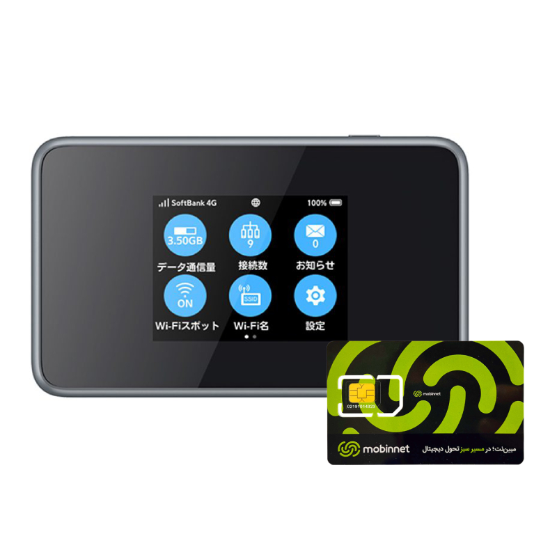 مودم 3G/4G/4.5G/TD-LTE قابل حمل زد تی ای مدل Pocket WiFi 802ZT به همراه سیم کارت مبین نت با بسته 200 گیگ یکساله