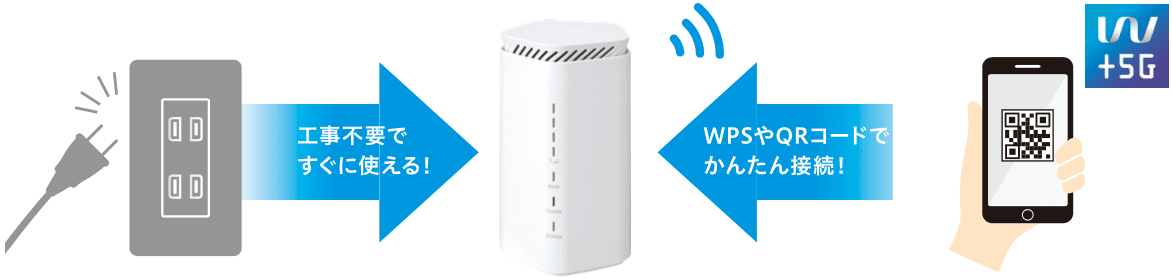 با قرار دادن سیم کارت و روشن کردن برق می توانید بلافاصله به اینترنت متصل شوید. نه تنها با استفاده از WPS *1 بلکه با خواندن یک کد QR از برنامه تلفن هوشمند “NEC WiMAX +5G Tool” *2 به راحتی می توانید به به Wi-Fi متصل شوید.