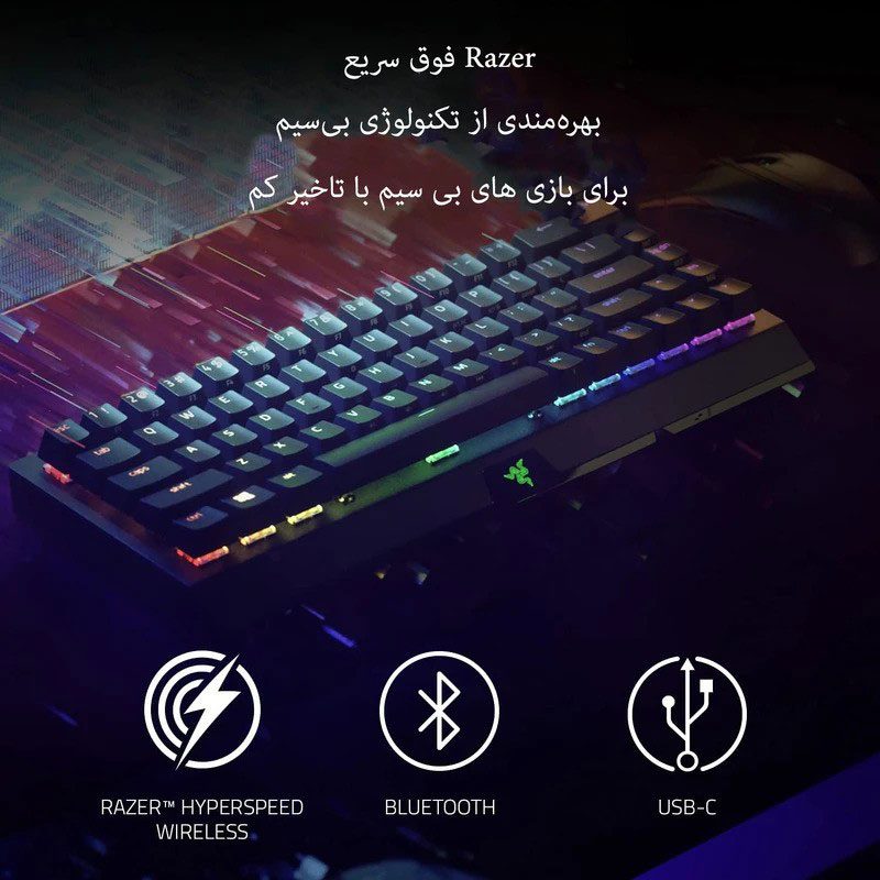 کیبورد مخصوص بازی ریزر مدل Razer BlackWidow V3 Mini HyperSpeed :کیبوردهای گیمینگ نقش بسیار مهمی در تجربه بازیهای ویدیویی ایفا میکنند. یکی از کیبوردهای محبوب و پرطرفدار در این حوزه، Razer BlackWidow V3 Mini HyperSpeed است که توسط شرکت معتبر Razer تولید شده است. این کیبورد ترکیبی از کیفیت ساخت بالا، طراحی جمعوجور و فناوری بیسیم با تأخیر بسیار پایین را ارائه میدهد که آن را برای گیمرهای حرفهای و حتی کاربران عادی بسیار جذاب میکند.کیبورد Razer BlackWidow V3 Mini HyperSpeed با طراحی جمعوجور و کلیدهای فشرده ساخته شده است. این کیبورد 65 درصدی، بدون بخش اعداد مجزا (Numpad) و با حذف کلیدهای اضافی، فضای کمتری روی میز اشغال میکند و امکان حرکت بیشتر دستها را فراهم میسازد.ساختار کلی کیبورد بسیار محکم و مقاوم است و استفاده از پلاستیک با کیفیت بالا در کنار کلیدهای مکانیکی باعث شده که عمر دستگاه طولانی باشد و حس تایپ و بازی روان و دقیق باشد.این کیبورد از سوئیچهای مکانیکی Razer Green استفاده میکند که حس کلیکدار و پاسخدهی سریع را برای بازیهای اکشن و تایپ فراهم میکند. سوئیچهای Razer Green با عمر بالا (حدود 80 میلیون کلیک) و سرعت عمل بالا، بازخورد لمسی و صدای جذابی دارند که بسیاری از گیمرها آن را ترجیح میدهند.علاوه بر این، سیستم اتصال بیسیم HyperSpeed 2.4 گیگاهرتزی ریزر، تأخیر بسیار پایینی دارد و با بلوتوث هم سازگار است که این امکان را میدهد تا کیبورد به راحتی با لپتاپ، کنسول یا موبایل نیز جفت شود.کیبورد از نرمافزار اختصاصی Razer Synapse پشتیبانی میکند که امکان شخصیسازی کامل نورپردازی RGB، تنظیم کلیدهای ماکرو، تغییر پروفایلهای کیبورد و تنظیمات عملکرد را فراهم میکند. این نرمافزار به صورت رایگان قابل دانلود است و محیطی کاربرپسند دارد.کیبورد Razer BlackWidow V3 Mini HyperSpeed یک انتخاب فوقالعاده برای گیمرهایی است که به دنبال یک کیبورد مکانیکی بیسیم با طراحی جمعوجور، عملکرد بالا و ویژگیهای شخصیسازی پیشرفته هستند. با توجه به کیفیت ساخت، عمر کلیدها و اتصال بیسیم کمتاخیر، این کیبورد یکی از بهترینهای بازار در رده خودش محسوب میشود.