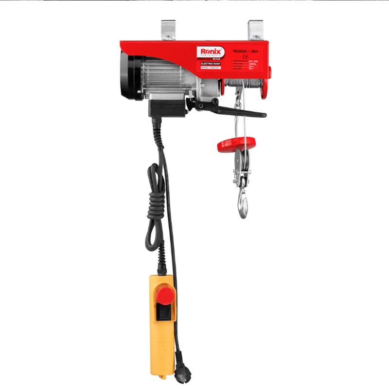 بالابر برقی 250 کیلویی رونیکس مدل RH-4130، سرعت 10 متر بر دقیقه بدون قرقره و سرعت 5 متر بر دقیقه با قرقره است، قدرت کابل تا 250 کیلوگرم بوده و متر با اتصالات می توان استفاده نمود. دارای سیستم قطعکن حرارتی برای جلوگیری از فشار به دستگاه است؛ به این صورت که سنسور حرارتي روي سيمپيچ، در صورت داغشدن موتور، تا زمانيكه دماي سيمپيچ موتور پايين نيايد، مانع از کارکردن دستگاه میشود.